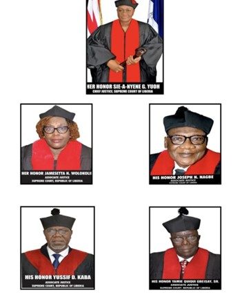 The Supreme Court is now headed by Her Honor Sie-A-Nyene Yuoh as Chief Justice. She was recently appointed by President George M. Weah. Her Bench has three other Justices, who were appointed by President Weah: His Honor Joseph Nagbe, His Honor Yusif D. Kaba, and His Honor Yamie Quiqui Gbeisay.