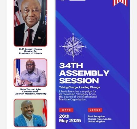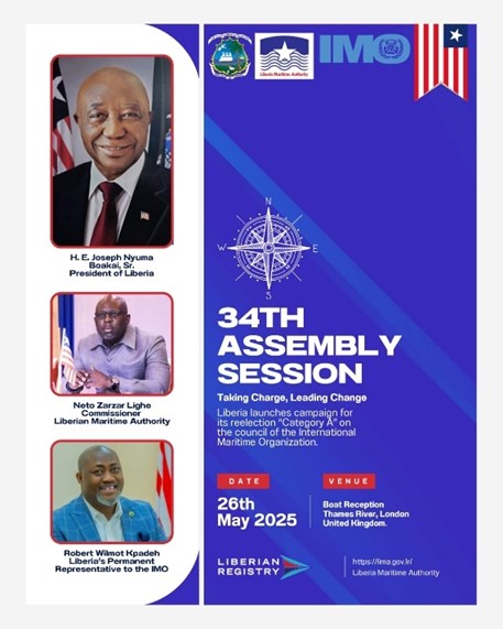 The Liberian Permanent Mission to the International Maritime Organization (IMO) in London, The United Kingdom, headed by Ambassador Robert Wilmot Kpadeh, in collaboration with The Liberian Embassy to the Court of St. James, will on Monday, May 26, 2025 at 6:00 p.m. to 10:00 p.m. London time officially launch Liberia’s campaign for re-election to Category “A” on the IMO Council.