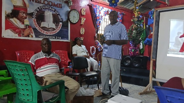 The China development projects awareness in Liberia program held at the God’s Fountain of Joy Ministries International, Chicken Soup Factory Gulf Community, brought residents of the community together who followed the narratives done by the Liberia-China Friendship Organization’s general secretary.